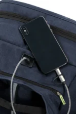 Med en integrert USB-port kan du enkelt lade mobilen eller nettbrettet direkte fra ryggsekken – uten å åpne den.